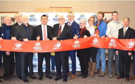Past and present board members from Kimberley Golf Club are pictured signing an agreement with Purcell International Education in May of 2019. Pictured from left to right (bottom) Duncan MacLeod,President of Purcell International Education, Ron Christensen, President of the Board of Directors at KGC, Ron Osterkampf, Vice President of the Board of Directors at KGC. (Top) John Burrell, past Board Member at KGC, Simon Jones,Director of Golf at KGC, Anne Wright, past Board Member at KGC, Derek Baker,Financial Secretary at KGC and Bob Mclean, Vice President of the Board of Directors at KGC. (Corey Bullock/Kimberley Bulletin file).图为金伯利高尔夫俱乐部(KGC)的前任和现任董事会成员,于2019年5月与珀塞尔国际教育有限公司签署了一项协议。图从左至右(下)分别是珀塞尔国际教育总裁Duncan MacLeod, KGC董事会主席Ron Christensen, KGC董事会副主席Ron Osterkampf。(上)前KGC董事John Burrell, KGC...